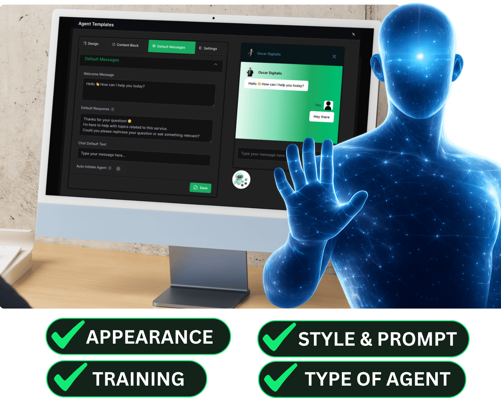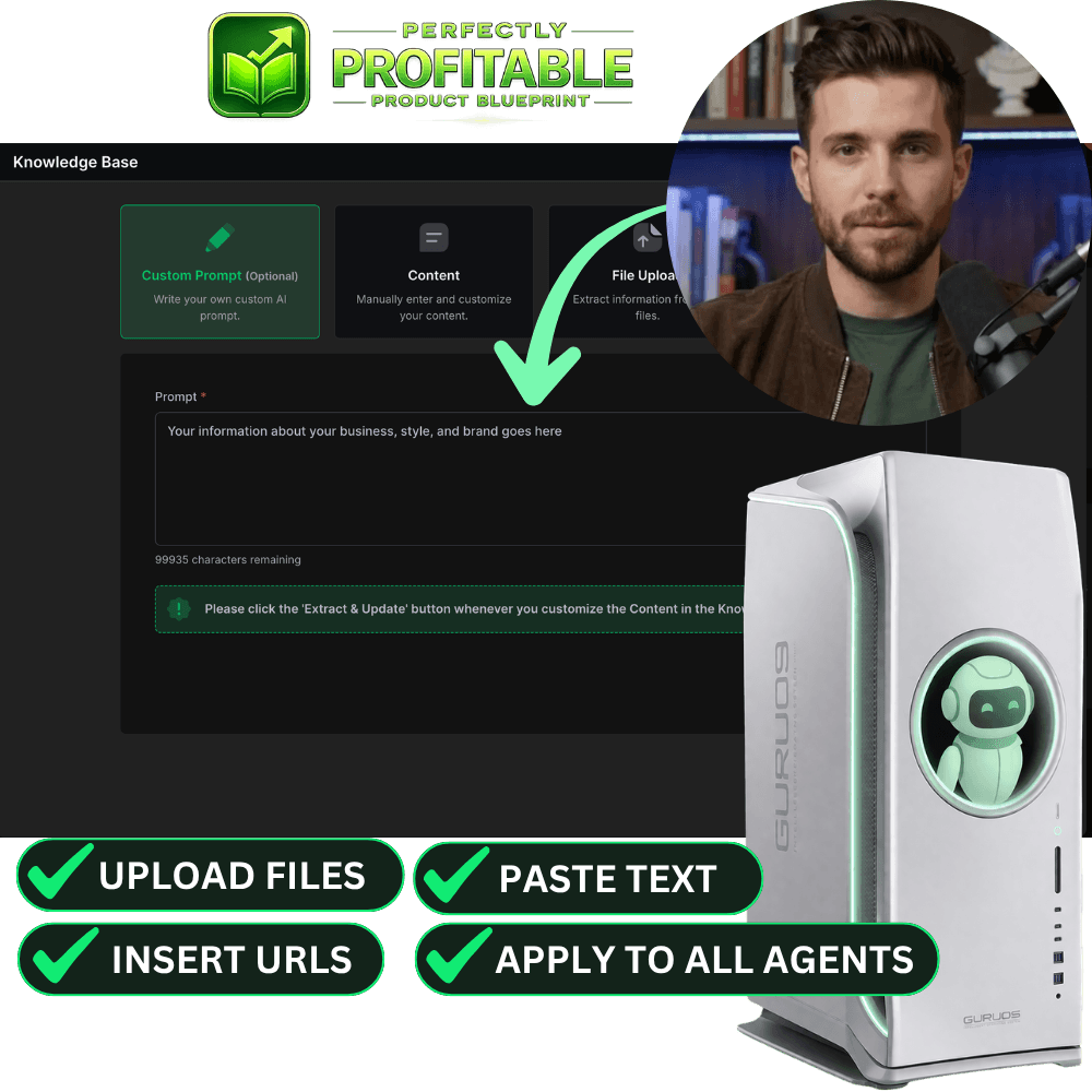 Start by training the operating system filled with multiple types of AI agents by uploading documents, pasting text, or adding links.
