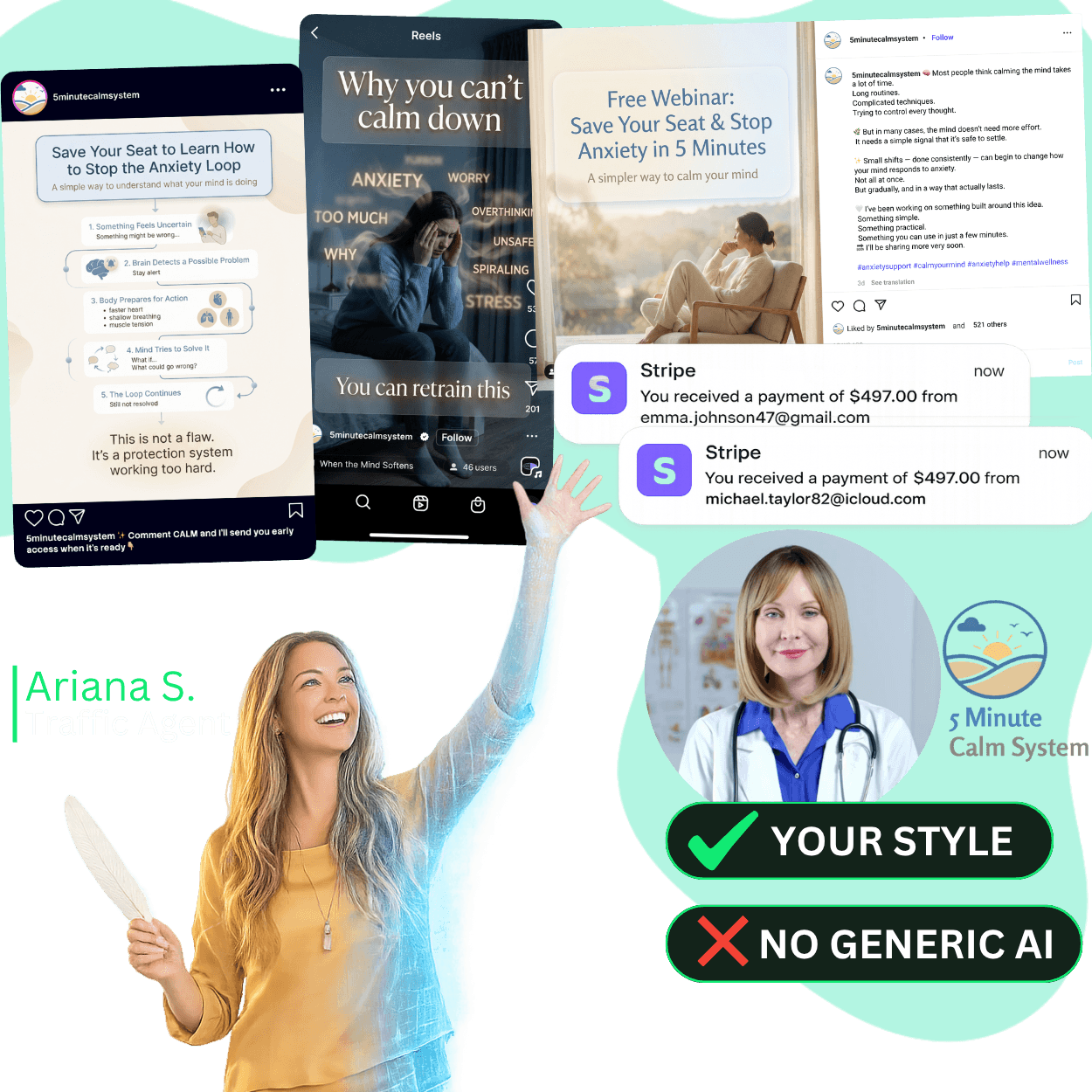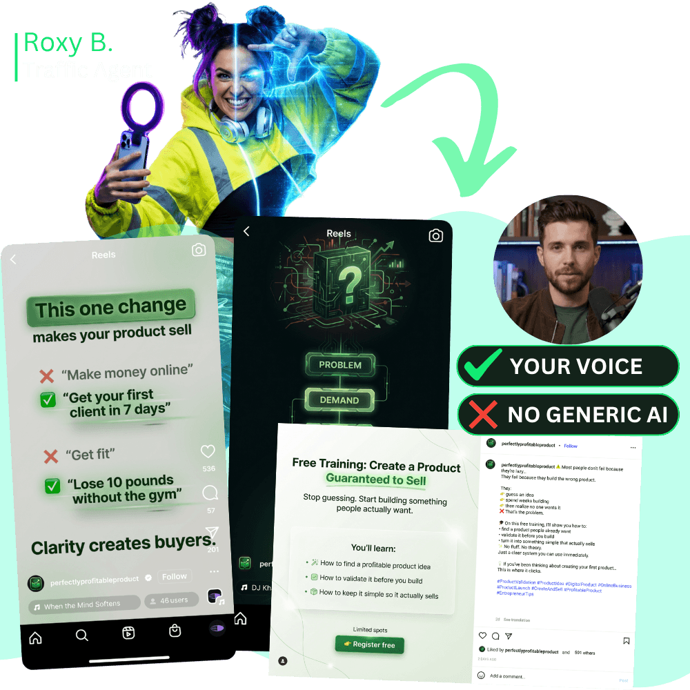 Unleash traffic agents that create branded social campaigns the algorithms love, bringing in consistent attention, leads, and sales automatically to all your products.